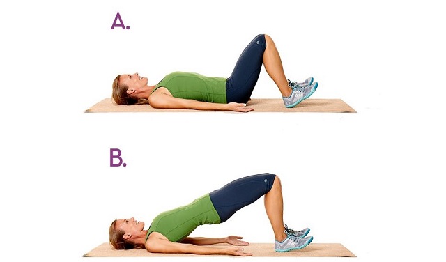 Je crois que le nom l’indique. Allongez-vous sur le dos, puis soulevez vos hanches en inspirant et en expirant continuellement, les mains sous la tête.